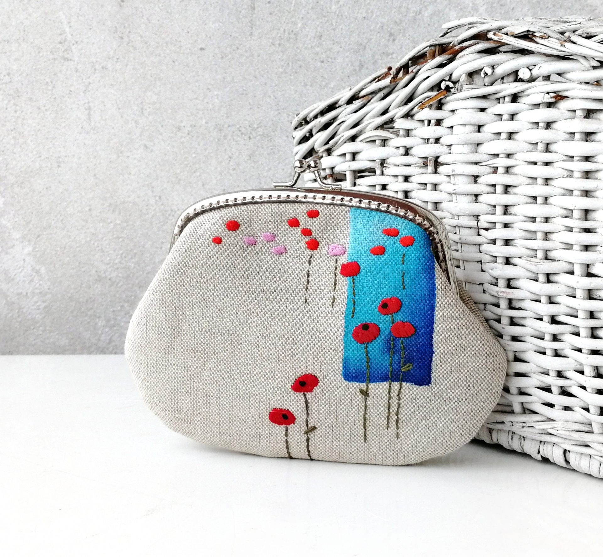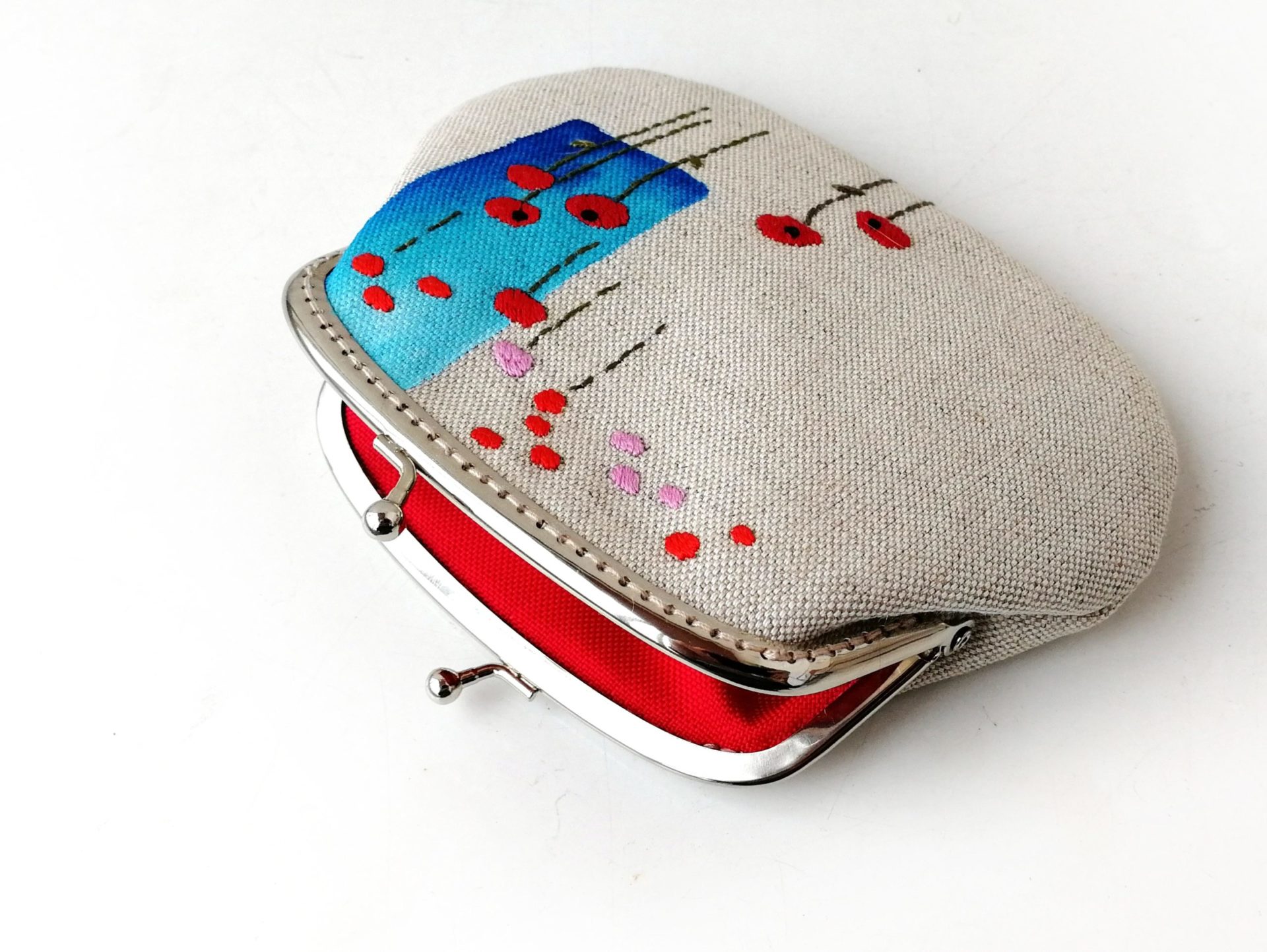 Veľkosť: úplne roztvorený rámček: 13 cm x 9 cm, šírka peňaženky 16,5 cm, jej výška 11 cm (+ rámček)